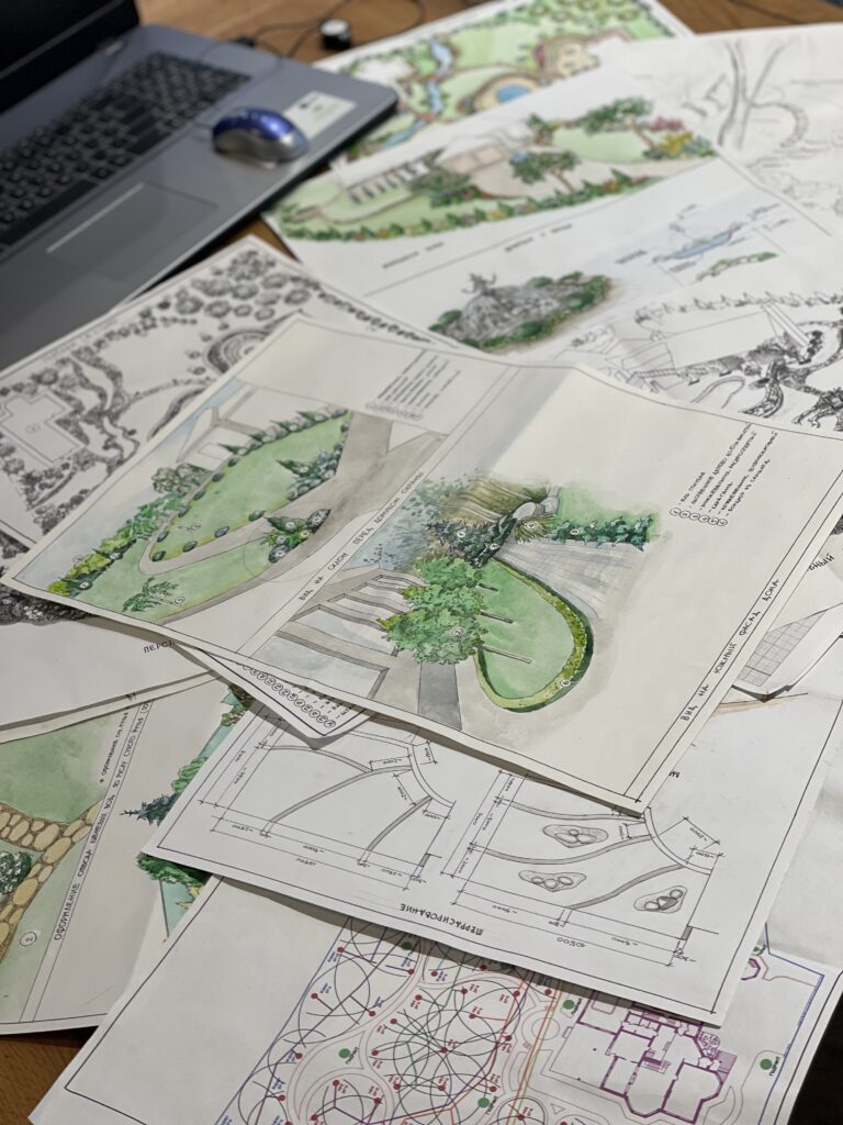 - Ландшафтний дизайн: проєктування зелених зон, садів, зон відпочинку, поливу, зон барбекю.